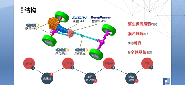 低速四驱扭矩放大:前后扭矩分配正常为50:50 ,还能实现多倍扭矩放大,适用于拖车、脱困等。