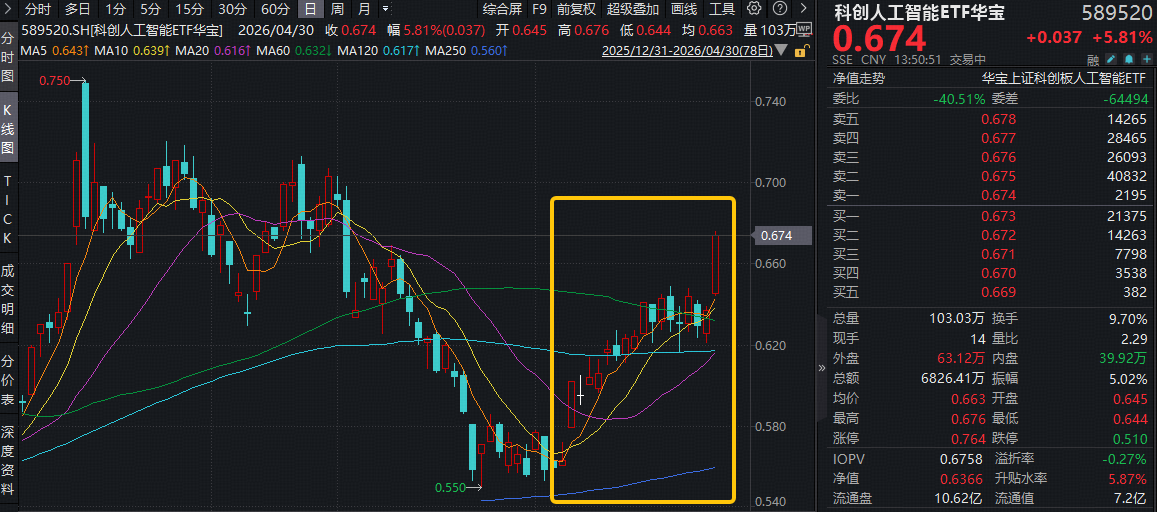 4月29日13:30,A股三大指数全线上涨,上证指数涨0.54%,深证成指涨1.62%,创业板指涨2.12%。创业板新能源ETF华夏(159368)上涨5.04%,最新报价1.667元,盘中成交额已达2.83亿元,换手率30.45%。成分股方面涨跌互现,天华新能领涨12.92%,汇川技术上涨9.37%,阳光电源上涨5.75%,亿纬锂能上涨、宁德时代等股纷纷走强,成交额2.83亿,位居赛道第一。创业板新能源ETF华夏盘中二级市场价格冲高至1.669元,创近三年以来新高,涨幅居赛道第一。统计显示,资金持续布局创业板新能源ETF华夏(159368)。近10个交易日内,有7个交易日获资金净流入,合计“