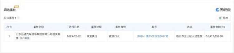 天眼查信息显示,近期山东远通汽车贸易集团有限公司恢复被执行人信息,执行标的为5141.832万元,执行法院为临沂市兰山区人民法院,案件相关细节尚未完全公示。山东远通汽车贸易集团有限公司成立于1995年10月09日,注册地位于临沂市通达路319号,法定代表人为武强,企业类型为有限责任公司(自然人投资或控股),注册资42857.1429万人民币,实缴资本与注册资本一致,是一家以从事批发业为主的企业。股东信息显示,该公司由周昆持股43.098%,为实际控制人,山东远通汽车贸易集团有限公司工会委员会持股41.852%,另有杨成斌、李建华等多名自然人股东持股。