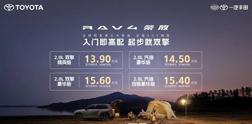 在家庭用车需求日益多元的当下,一辆既能从容应对日常通勤,又能承载全家出游梦想的SUV,成为众多家庭的理想之选。全新RAV4荣放凭借全面进阶的产品力,以全能家用SUV之姿进入市场。官方指导价16.98万元-22.88万元,限时焕新价下探至15.18万元-21.08万元,让高品质出行触手可及,为家庭用户带来更具价值的选择。多元动力,精准匹配每一种人生姿态30多年前,RAV4荣放融合SUV的强悍与轿车的舒适,开创城市SUV全新品类,开启“可城可野”的出行新时代。历经六代进化,全球累计销量突破1500万辆,连续8年蝉联全球SUV销量冠军。2009年进入中国以来,经过17年的深耕细作,赢得超200万中国