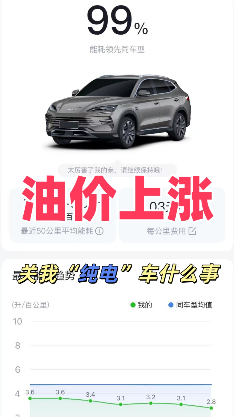 随着中东地缘局势持续紧张,国内成品油价格即将迎来新一轮上调。多家机构预测,3月23日24时,92号汽油每升预计上涨1.6元,全国多数地区将重回“9元时代”。这意味着,加满一箱油,将比此前多花近百元。拍摄于2026年3月22日晚面对油价飙升,燃油车车主叫苦不迭,而比亚迪插混车主却显得格外从容——因为比亚迪第五代DM技术的答案是:可油可电,怎么开都省。城区用电:一周一充,通勤成本每公里5分钱。对于日常通勤来说,比亚迪大电池DM-i车型给出了“用电自由”的解决方案。2026款秦PLUS DM-i等车型已将CLTC纯电续航提升至210km,直接杀入8万级市场。这意味着,以日均通勤30公里计算,一次充电