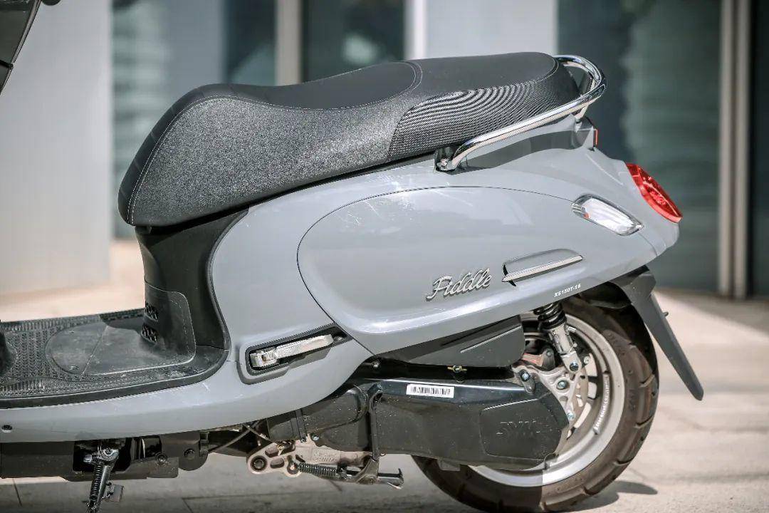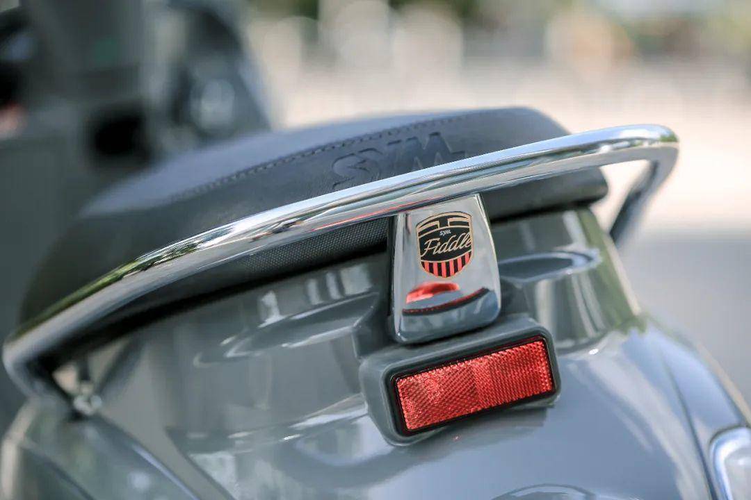 除了车头处的造型变化外,尾部为了更加突显复古风格,将后货架换成了一体式后扶手。同时整车的Logo也由原来的三阳标识,换成了更具特色的FIDDLE系列标识,有意将这款车打造为了一个复古系列,全新的Logo也让这款车在细节上更加丰富。