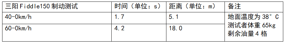 减震系统和之前的FIDDLE 4相同,整体依旧是偏硬一点的调校,这种调校更方便后期使用中带人或增加储物空间时的需要。制动系统的制动力输出足够,但ABS系统标定延续了FIDDLE 4略微保守的风格,ABS介入很早。在实际测试中,短距离制动成绩非常出色,但在长距离制动中,ABS过早的介入还是多少影响了制动效率。
