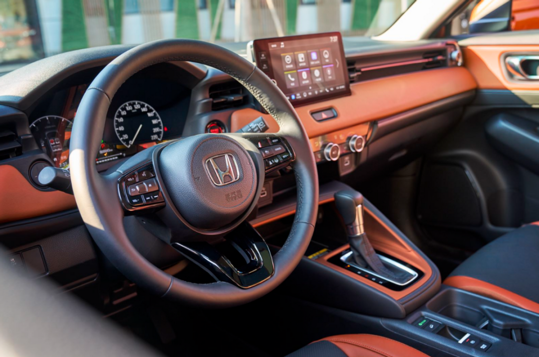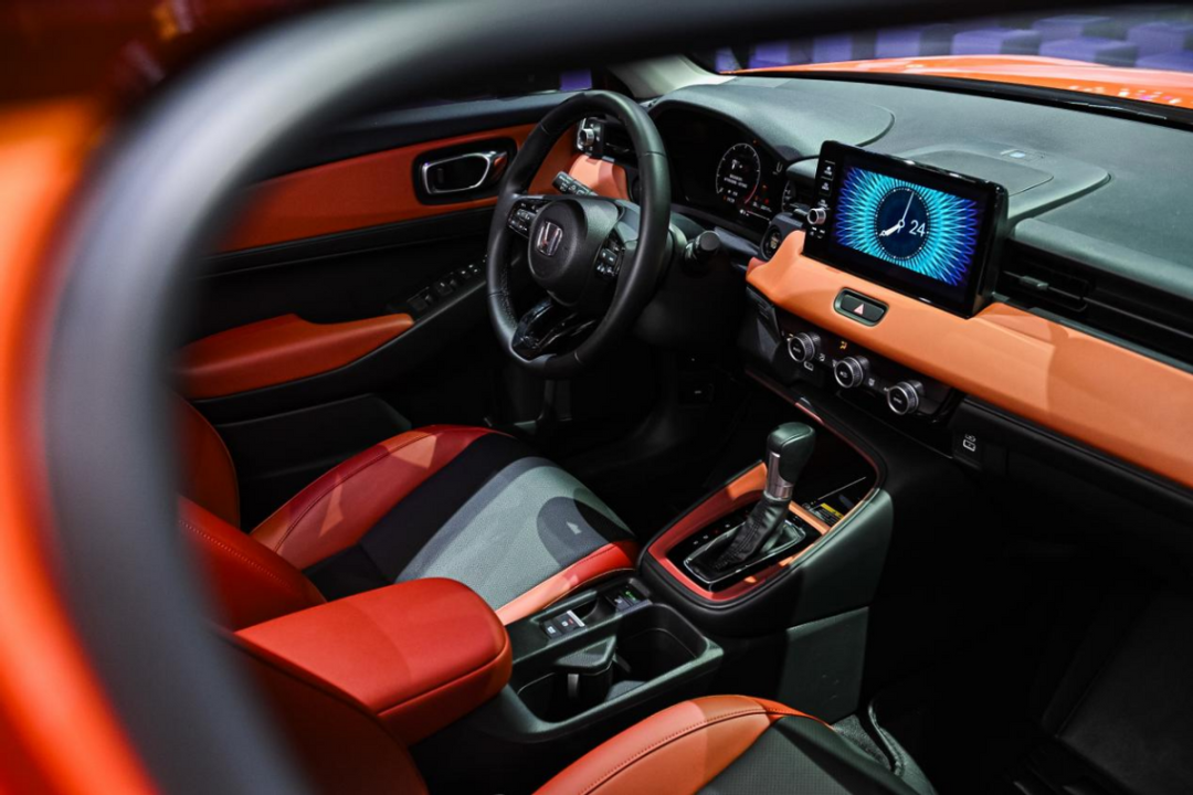车内部分延续了黑橙双拼的内饰配色,将年轻时尚的氛围很好地传递到车内,内外呼应格调一致。而从设计实用性和科技感的角度来看,他说2024款XR-V很好地平衡了二者的权重,有液晶仪表,悬浮大屏;也有实体按键,机械挡杆。