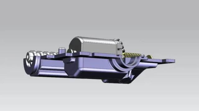 我们来看看它的工作原理:电机在接到来自系统发出的指令后,通过安装在电机输出轴上蜗杆带动斜齿轮,开始旋转,斜齿轮的旋转带动蜗杆旋转,蜗杆带动与之配套的螺母做直线运动,从后面带动门把手做推拉运动,完成整个门把手的伸缩工作过程。