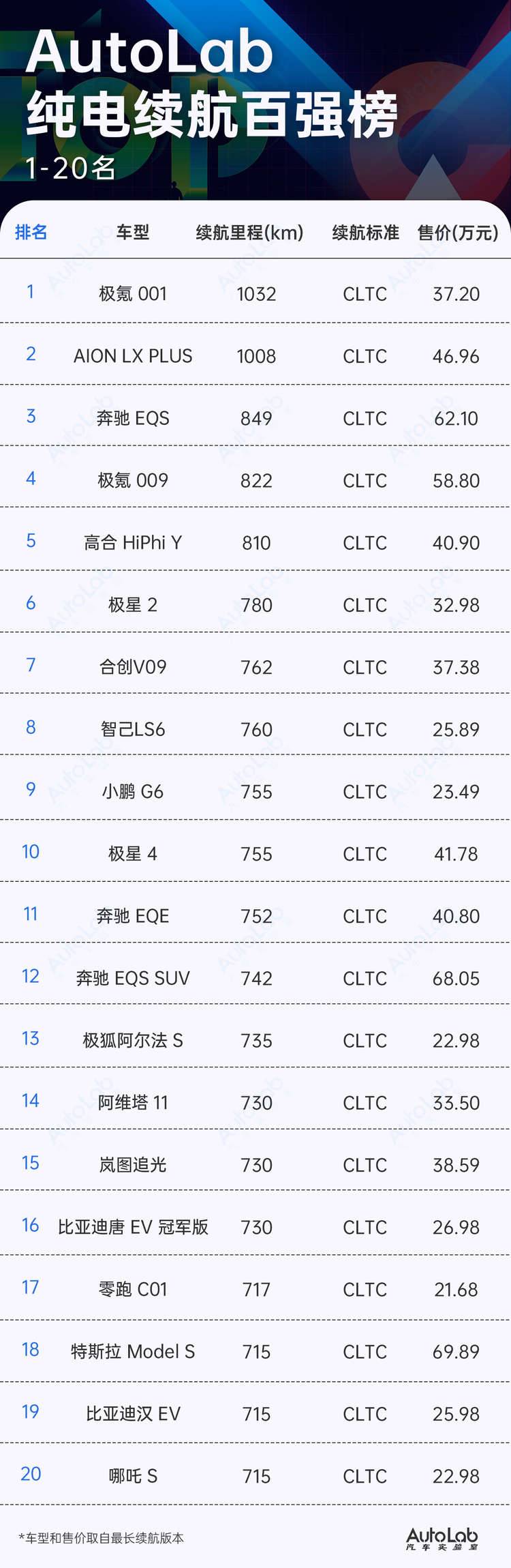 11月续航百强榜丨极氪霸榜半年,智己LS6力压小鹏G6