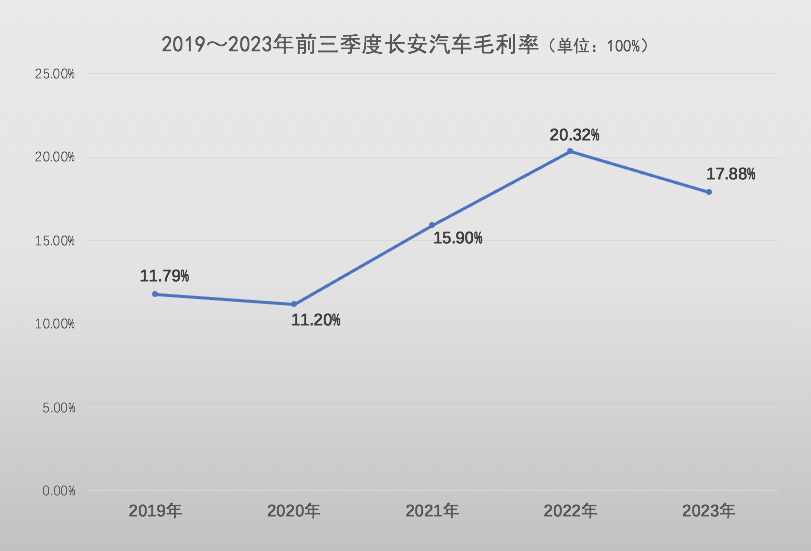 报告显示,最近三年前三季度长安汽车毛利率处于高位区间。