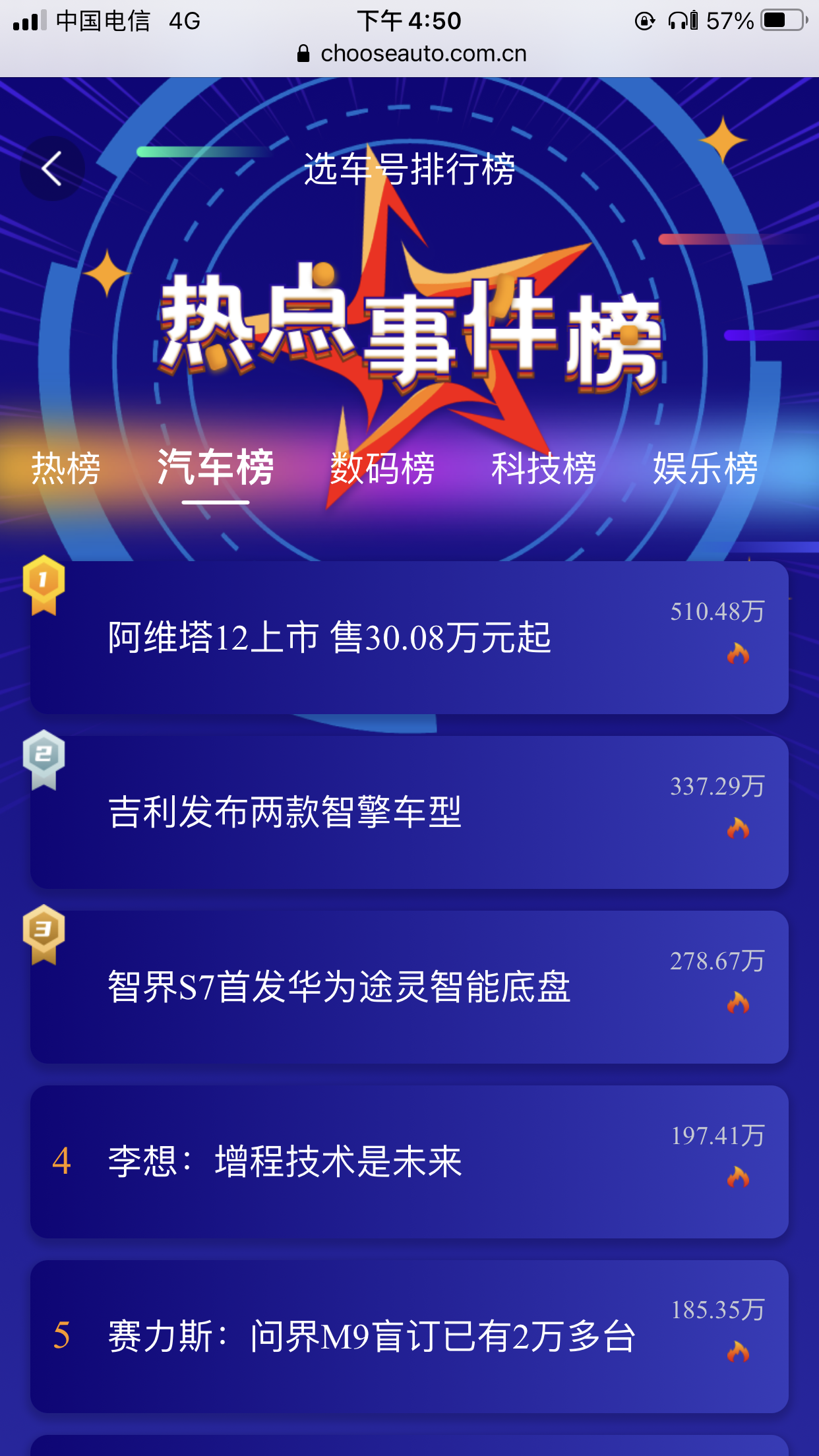阿维塔12上市登上了《选车网》汽车热搜榜头条。