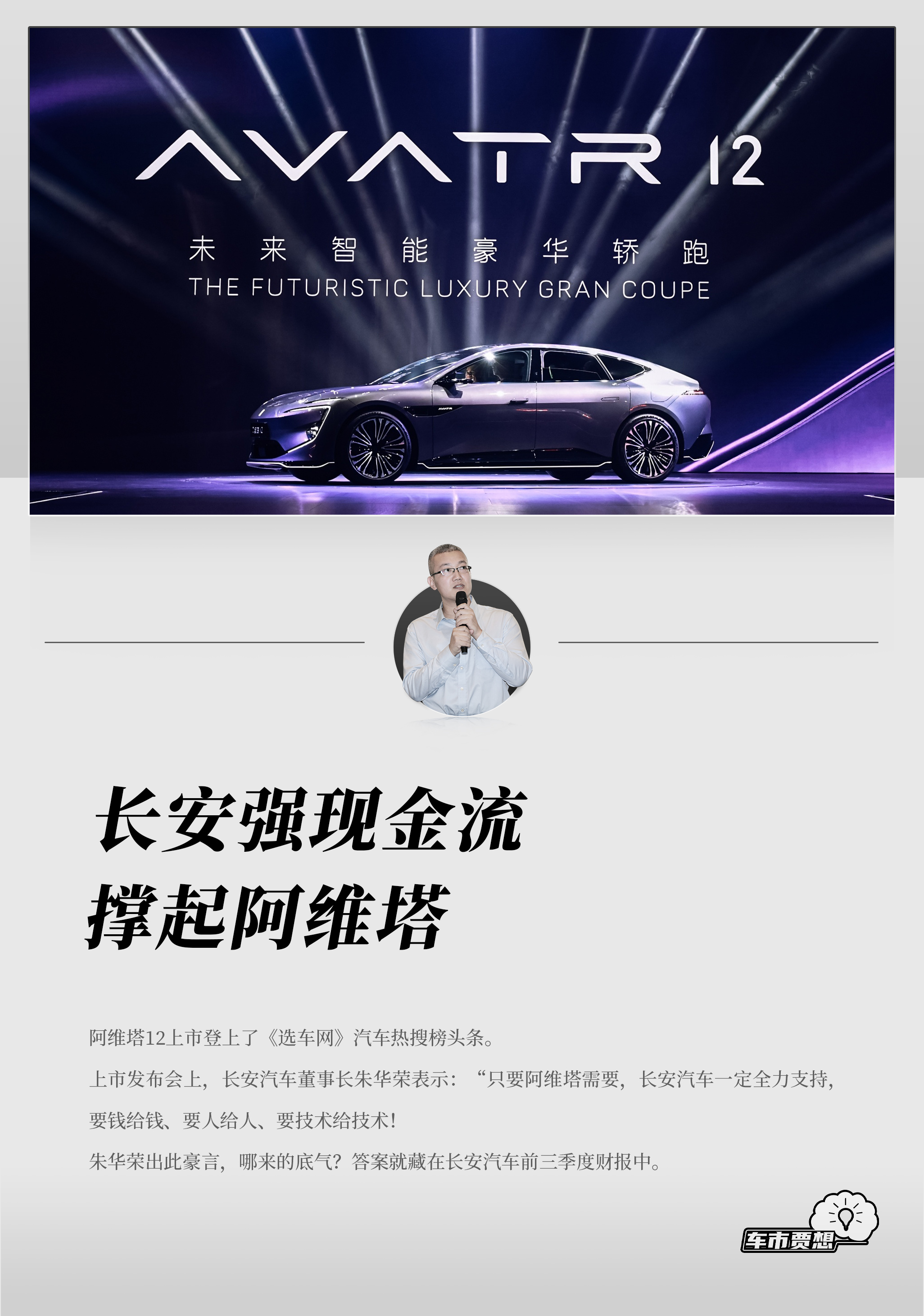 上市发布会上,长安汽车董事长朱华荣表示:“只要阿维塔需要,长安汽车一定全力支持,要钱给钱、要人给人、要技术给技术!