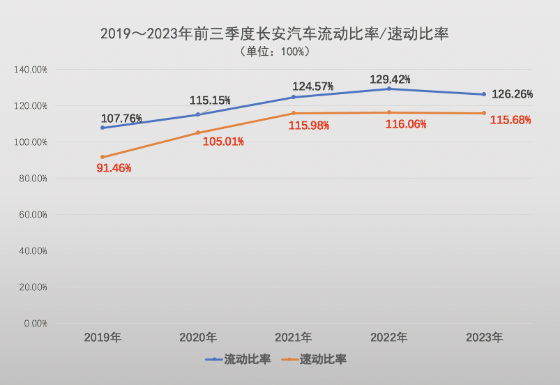 报告显示,今年前三季度长安汽车资产负债率突破60%,但反应流动资产和流动负债的流动比率和速动比率均高于100%。