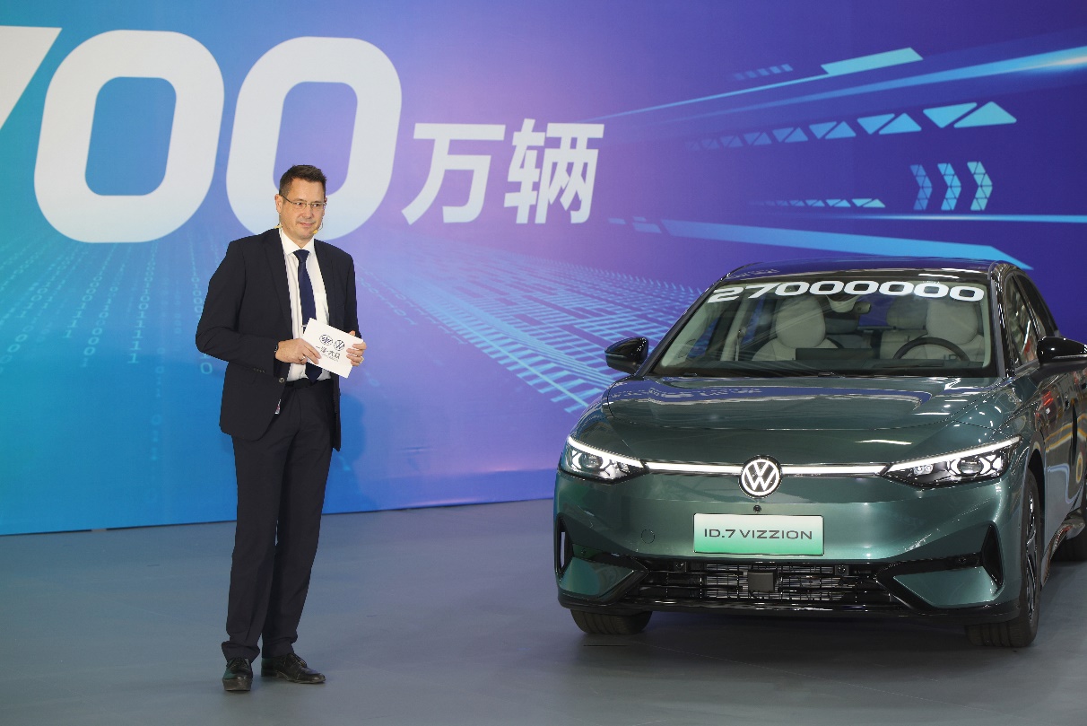 仪式现场,一汽-大众董事、党委书记、总经理潘占福在致辞中表示:“2700万辆整车下线的背后,是2700万用户对一汽-大众的信任,是一汽-大众对高品质的不懈追求。一汽-大众始终坚持以用户为中心,为广大用户提供更加优质的产品与服务。作为第2700万辆下线的整车产品,ID.7 VIZZION标志着ID.家族2.0时代的正式开启,一汽-大众也将加快新能源智能转型,走好高质量发展新道路。”