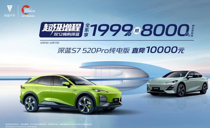 2023年的最后一个月如期来临,各家车企也进入了年终冲量的关键时刻,毕竟留给大家完成KPI的时间已经不多了。在经历了年初价格战的惨烈之后,通过各种政策促销已经成为各大厂商的基操,用于缓解不断加剧的销量压力。在12月的第一天,深蓝汽车又重磅开启了新一轮的价格战:深蓝汽车全系享定金1999元抵8000元购车款,深蓝S7 520Pro纯电版,更是直降10000元,叠加定金抵扣综合钜惠最高高达16000元。并且12月1日至12月17日下定还有机会获得价值5000元洪崖洞随心玩大礼包!更详细的权益介绍,大家可以前往当地的深蓝订单中心了解。