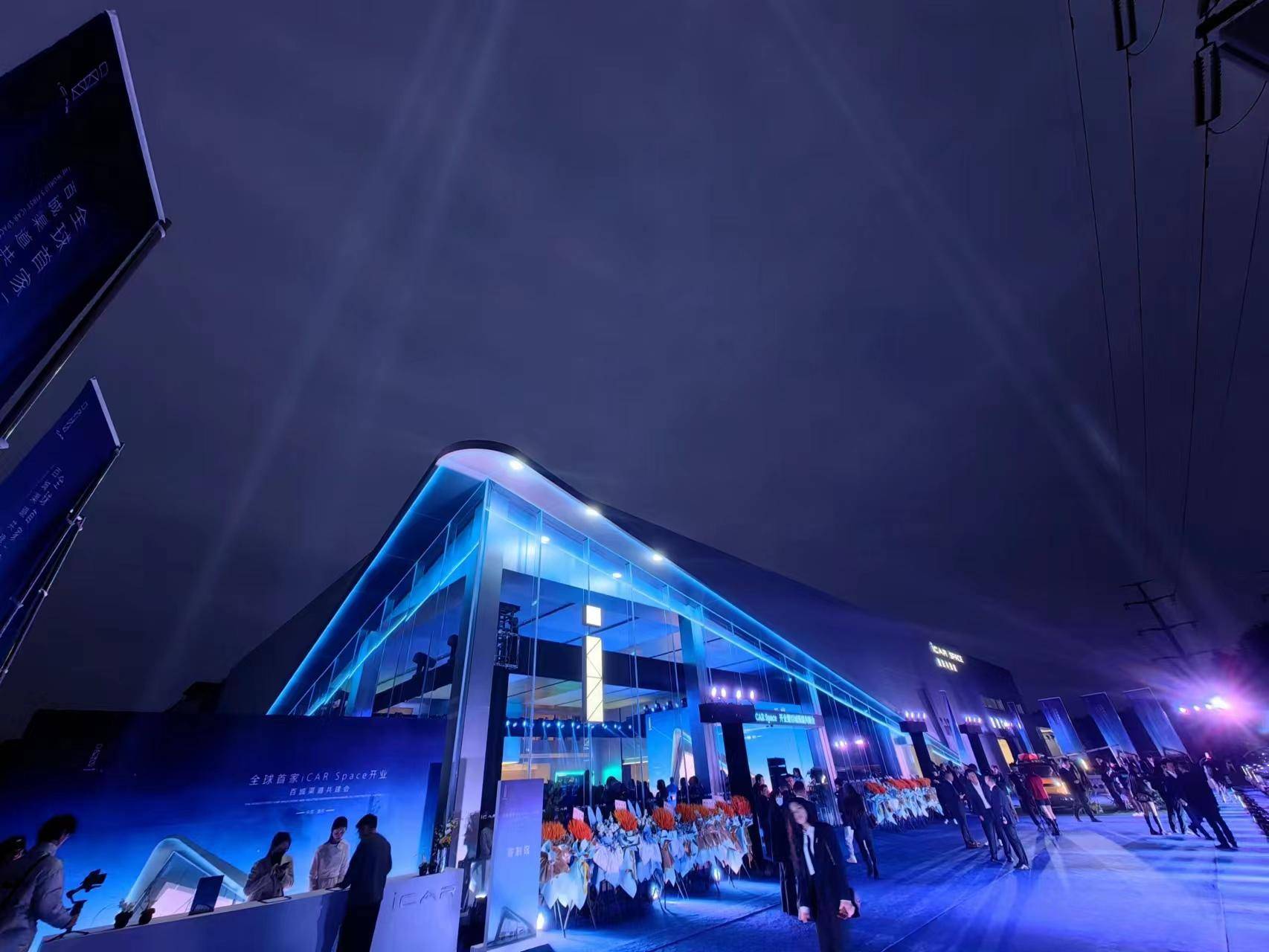 远远望去,整体亮银色的方盒子,贯以蓝色的灯带,两根相交的线条交汇成耀眼的几何体;明亮的落地窗上,赫然印着发光的“i”字形LOGO——这块logo由七巧板的七种图形构成,传承着华夏民族4000年的智慧,彰显出iCAR汽车作为智能的潮流纯电品牌的身份。