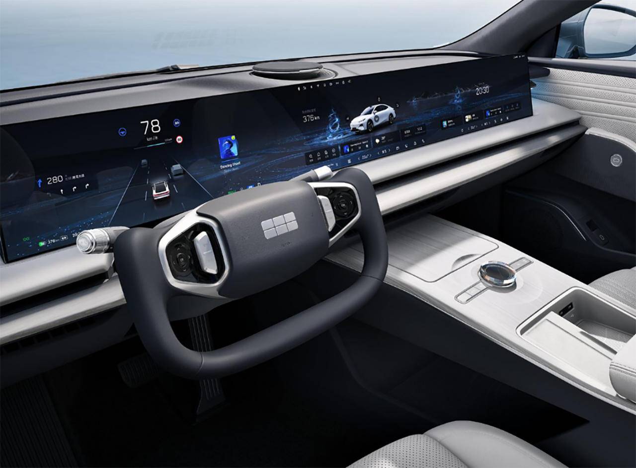 银河E8,算是目前吉利银河品牌的旗舰,内有一块45英寸的8K长屏,规格相当高。车型定位是类似Taycan那种豪华电动轿跑,价格目前还没有公布,猜测会比极氪001便宜点。