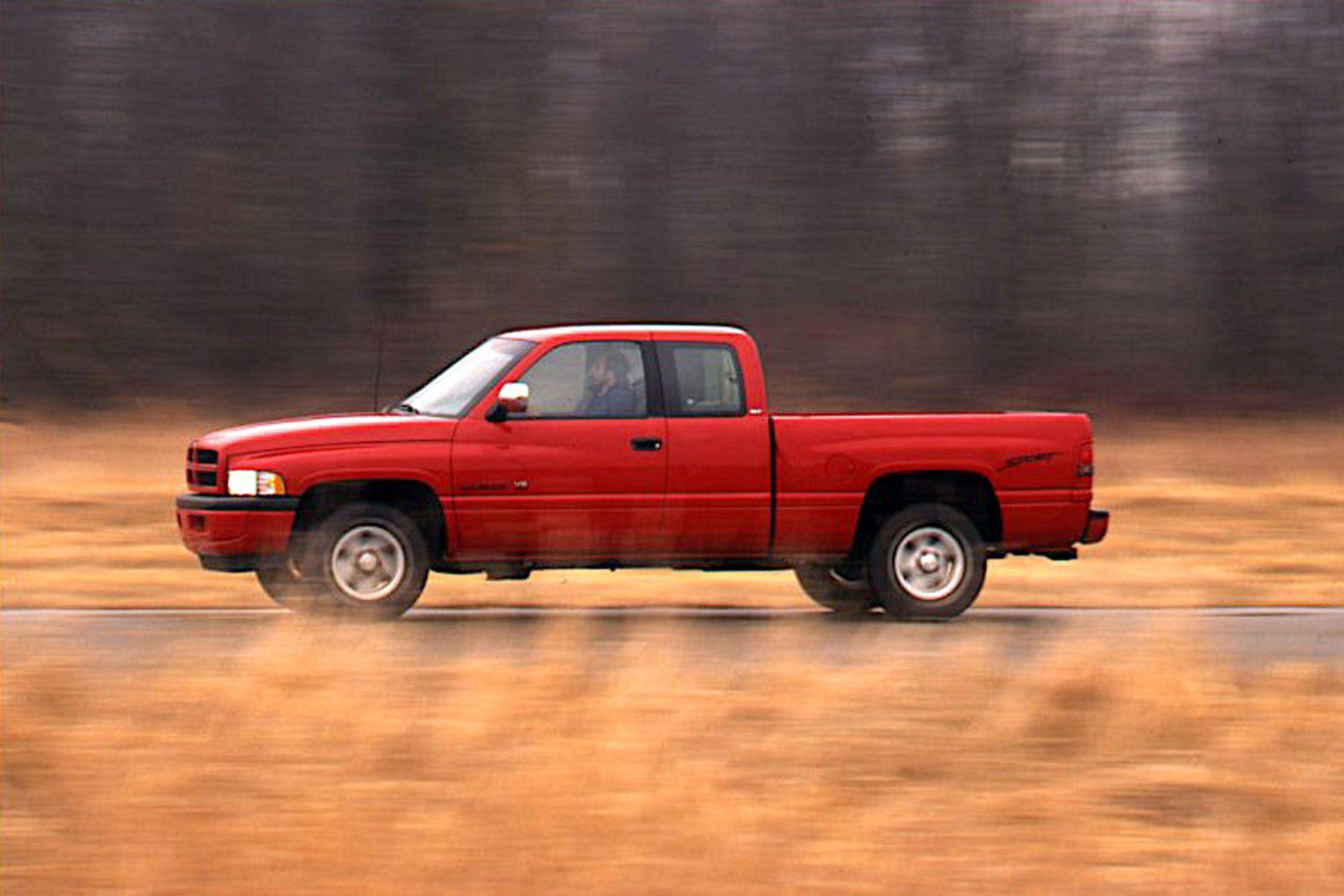1996 Dodge Ram 1500 Sport 220-hp V-8, 4-speed automatic, 4576 lb基础/测试价格:$18,476/$24,211C/D测试结果:60 mph: 9.8秒1/4英里:17.4秒 @ 79 mph90 mph: 25.0秒制动,70-0 mph: 218 ft道路保持,300-ft-dia转盘:0.68 g;燃油经济性:13 mpg
