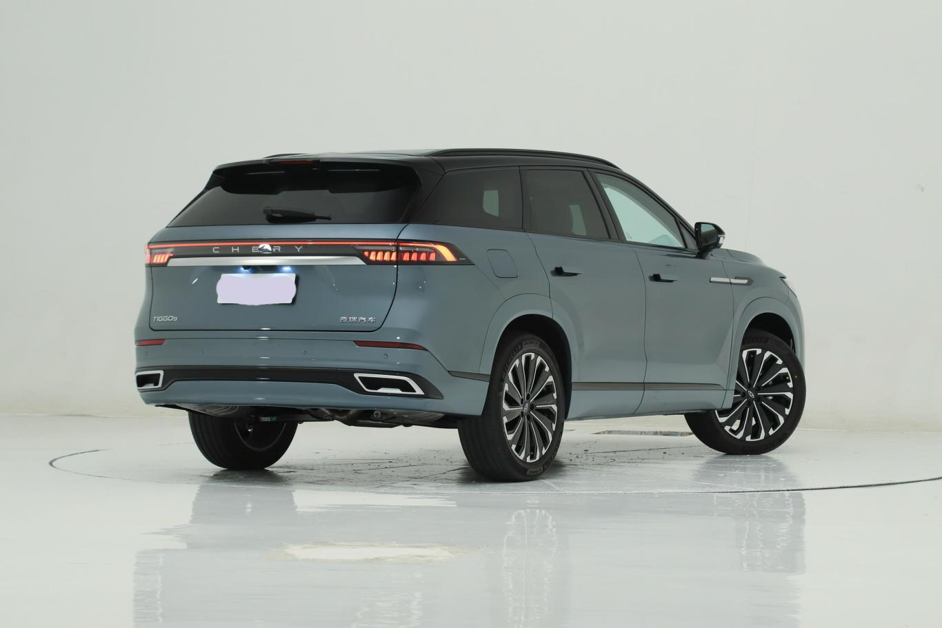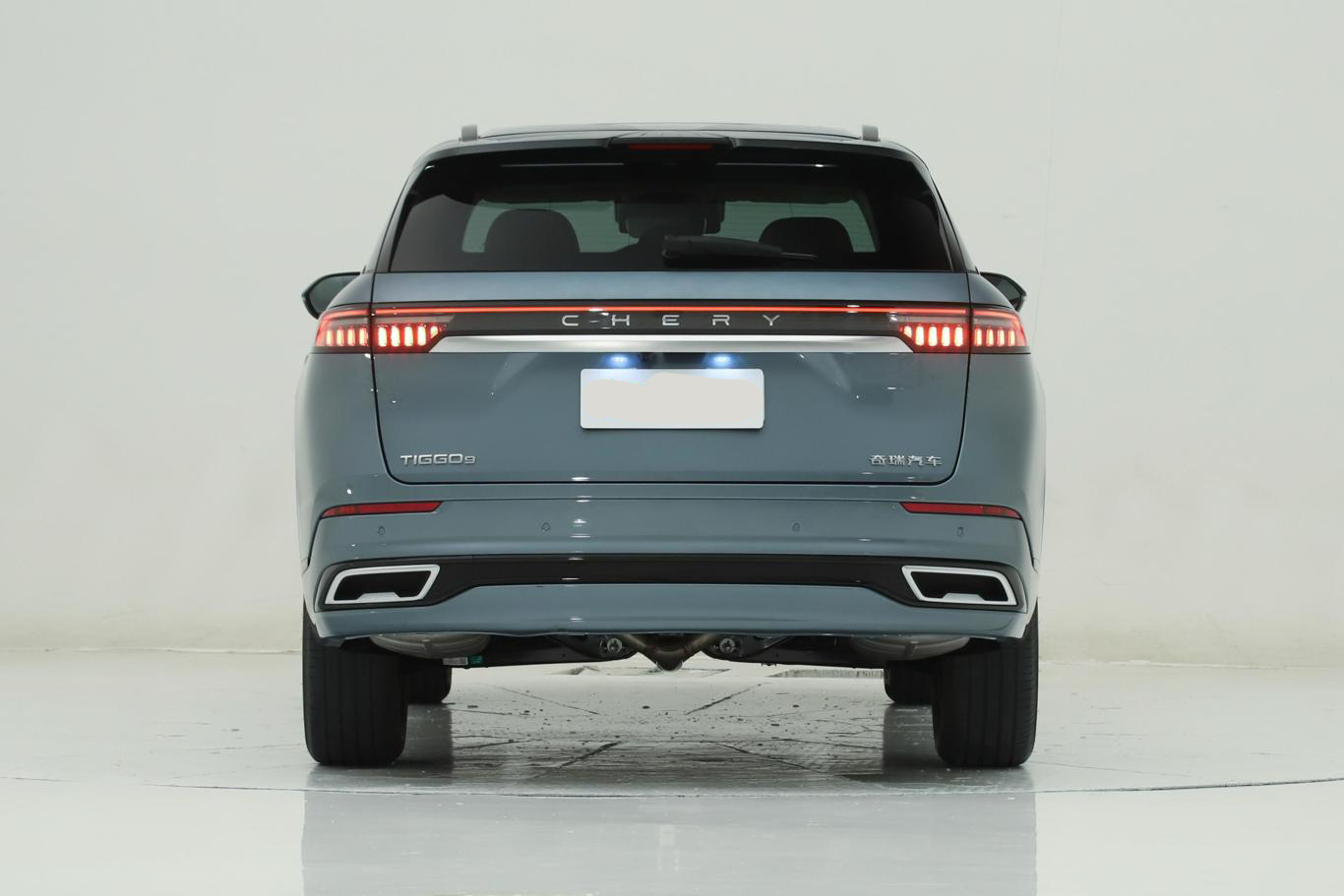 车尾部分,瑞虎9使用熏黑贯穿式尾灯组,并且在尾灯中央位置还加入了一块黑色+银色饰板(表面加入了奇瑞“CHERY”英文字母LOGO)。此外,后包围底部还配备了双边共两出排气、熏黑装饰件、车身同色扩散器。