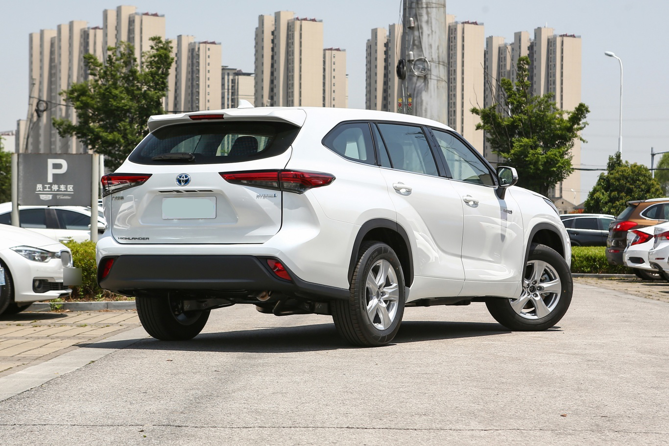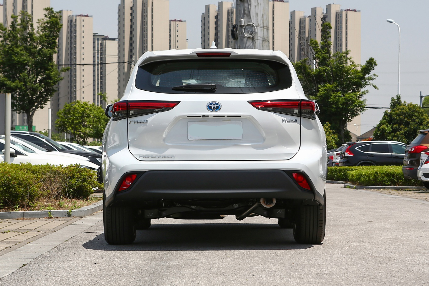 汉兰达车辆的尾部经过特征性勾勒之后营造出不错的层次感和肌肉感,而后窗的倾角更大,让尾部造型拥有更强的动感,同时熏黑的后尾灯造型与头灯组形成呼应,加上敦厚的后包围造型,车尾视觉力量感很强。