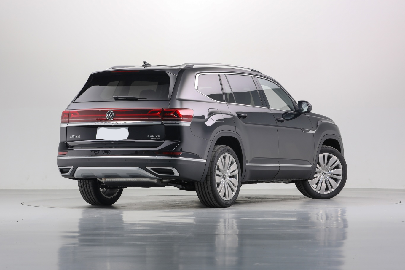 途昂的车尾整体则颇为敦实,外扩的车身区域让尾部轮廓呈现结实有力的梨形结构,车窗上沿的扰流板两侧配有银色的饰边装饰,车尾的贯穿式尾灯造型前卫,粗壮的灯腔内部配有多根纤细的灯带结构,与车头一样,尾灯可与车标一同亮起,灯组下方配有贯穿的镀铬饰条搭配,在气质上更为沉稳,后包围底部配有带扩散器纹路的枪灰色护板,两侧则为双出的排气装饰。
