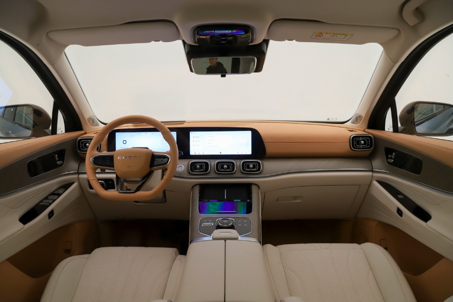 瑞虎9的内饰延续了家族式的设计,环抱式座舱以及车门等位置有些奔驰的范儿,呵呵,车厢内使用大量软性材质覆盖和皮质/真皮包裹,12.3英寸液晶仪表、12.3英寸中控大屏以及电子怀挡机构,营造出了科技氛围,内置高通骁龙8155芯片,保障了车机流畅度,拥有256色氛围灯和索尼品牌音响。配置方面,瑞虎9还有主动刹车、车道保持、侧安全气帘、胎压显示、360度倒车影像、全速自适应巡航、可开启全景天窗、电动后尾门、无钥匙进入/启动、手机无线充电、前排座椅加热/通风、第二排座椅加热、车联网、手机互联、索尼品牌音响、LED大灯、前排多层隔音玻璃等配置。