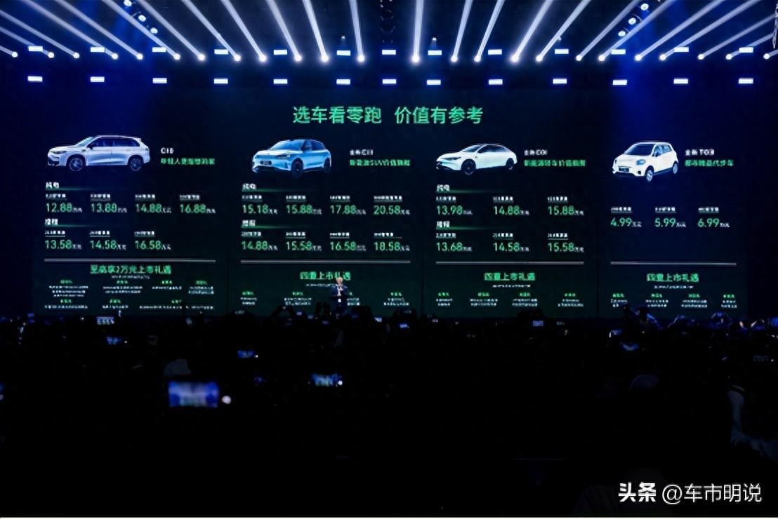 发布会上,零跑创始人、董事长、CEO朱江明现场揭晓最新车型C10及全新C11、全新C01、全新T03售价,其中C10售价12.88-16.88万元, 全新C11售价14.88-20.58万元, 全新C01售价13.68-15.88万元,全新T03售价4.99-6.99万元。这一套组合拳给车市投下了一颗重磅炸弹,业界惊呼,“卷王”朱江明出手就是“王炸”,可以说零跑这个2024全新全家桶,再次为20万以内的用户选车刷新了一个价值参考。