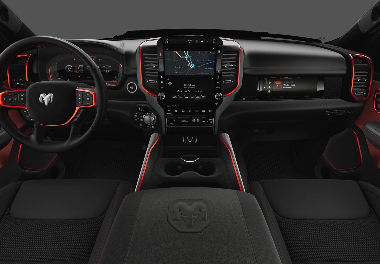 由于Ram现在有八个装饰级别,而发动机根据装饰级别主要进行分配,因此我需要上升到其中一个较高级别的装饰级别才能获得540马力的双涡轮增压六缸发动机。既然我打算走到这一步,那么我就索性选择新的旗舰车型——钨合金(Tungsten)。问题是,一旦选择了钨合金,你那复杂的决策树将失去很多分枝,因为它拥有Ram能提供的几乎所有功能。而且,它仅作为4驱 crew cab车型出售,配备5'7''的床。 even the colors are subdued,here 这里没有充满乐趣的反叛色彩。