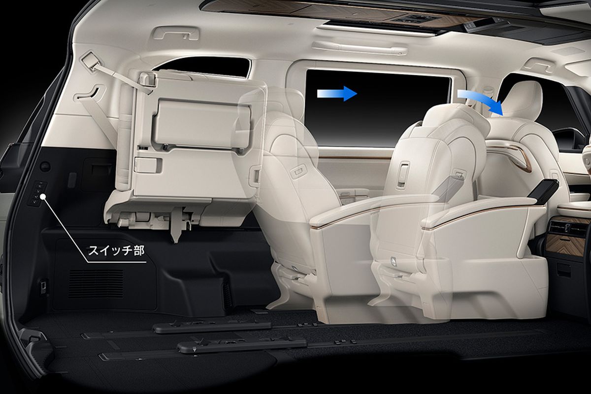 在后门开口处的甲板侧面配置了第二座椅操作开关。因此,通过从后门侧滑动和调节第2排座椅,可以不干扰地弹起第3排座椅,扩大行李空间。