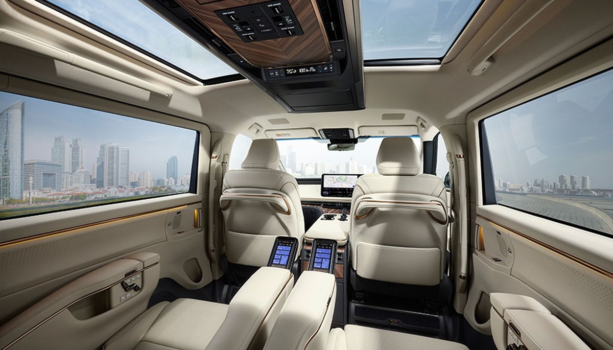 根据日本当地披露的消息,6座的“雷克萨斯LM500h version L”车型第二排座椅左右各配备多操作面板,后排的头顶控制台也考虑到了第三排的便利性。副驾驶座的头枕不仅可以向前倾倒,还可以上下调节。由此,提升后座的开放感和视野,提供更舒适的空间。