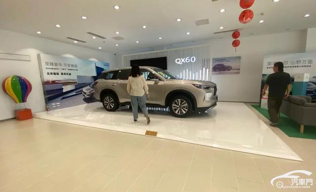 与新能源4S店不同的是,东风日产旗下品牌英菲尼迪4S店的状况可以用凋敝来形容。全店只展出一款2021年上市的QX60,车饰用塑料布包裹且车机系统关机,显然没有多少顾客光临。