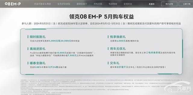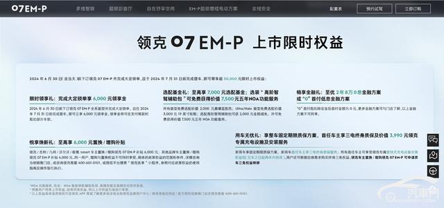 另外,小编也询问了4月上市的领克08 EM-P,官方指导价格19.58万元,目前官网限时价格17.98万元。工作人员称,现在订购领克08 EM-P可享受现金优惠18000元,金融政策与领克07 EM-P一致。