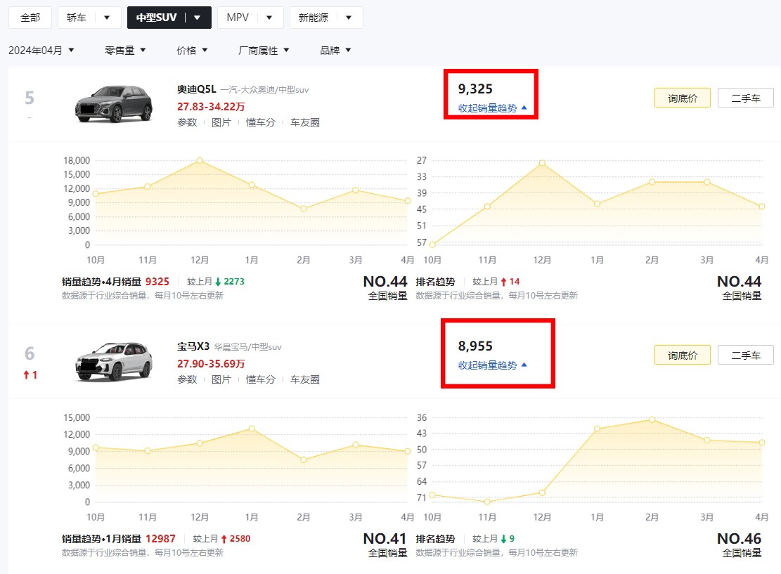 那花裸车27万多、落地也就30万出头的价格,便能够买到一台传统意义上的德系豪华中型SUV,也就难怪近期买宝马X3的人会越来越多了。更很好地解释了,宝马X3在近半年来的销量数据上为啥已经逼近奥迪Q5L(参数|询价),因为这两台车实际在终端的售价其实几乎也已经都差不多了。
