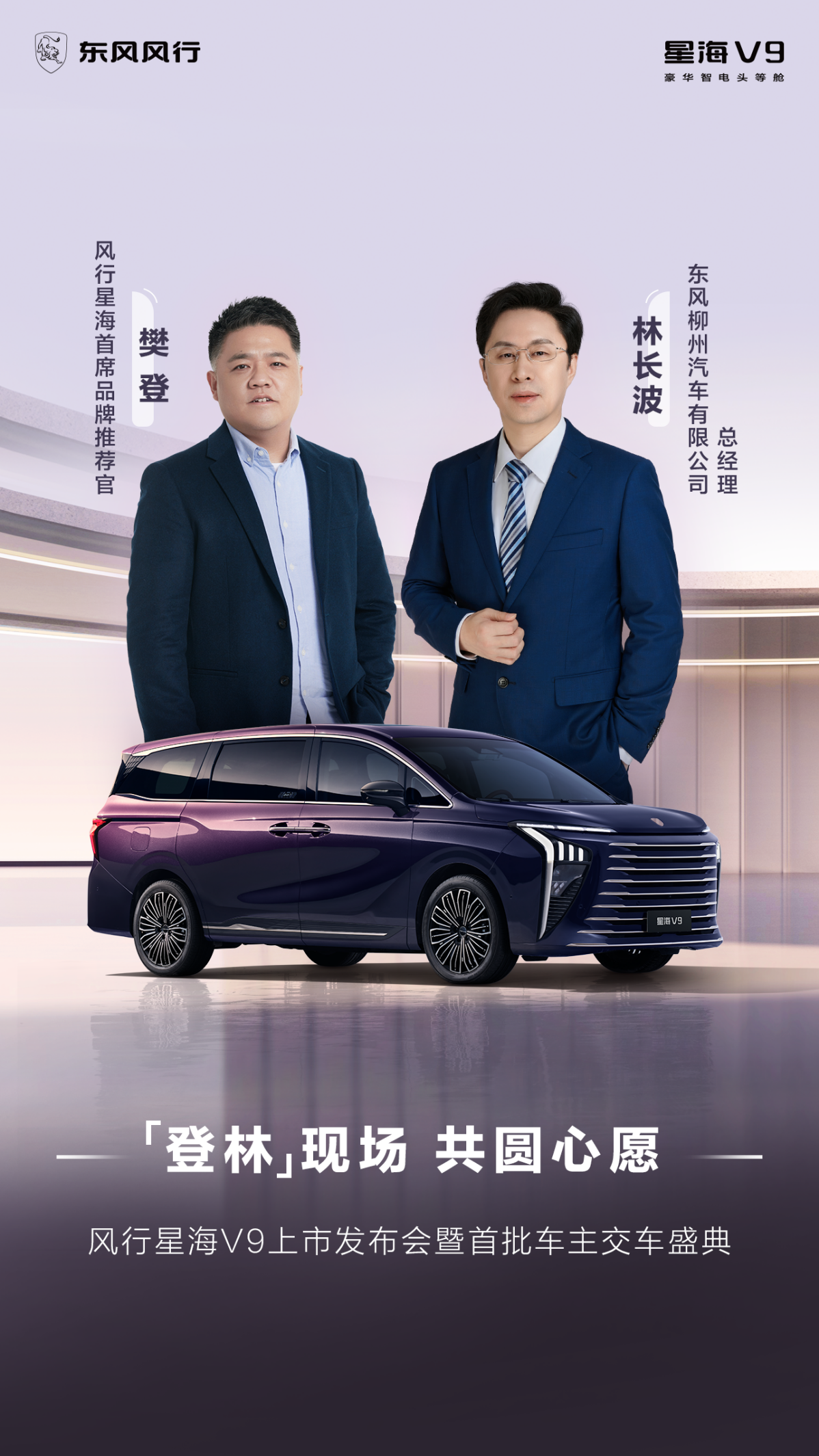 上市发布会现场,风行星海首席品牌推荐官、商圈名人车主樊登先生以及旅行达人“熊起不惑居”惊喜站台,分享与星海V9相处的温馨时刻。同时,东风柳州汽车有限公司总经理林长波亲自为车主代表交付新车,并官宣全国101个城市同步上市交付。通过多城联动,共同见证中国9系车的豪华实力崛起。