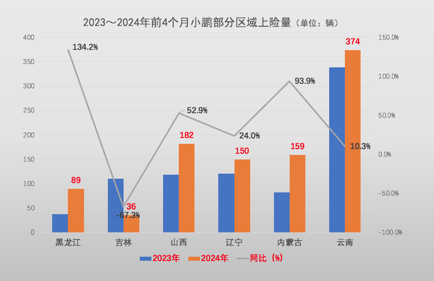 仅看十个重点区域似乎并不明显,如果拓展至湖北、北京、福建、湖南和江西——纯电动车销量前15名的区域,前四个月小鹏合计上险量为27.51万辆,同比增长29.75%。15个区域的上险量占小鹏总量的比重达到87.08%,较去年同期上涨了1.91个百分点。换言之,小鹏今年的精力集中在纯电动车主销区域。