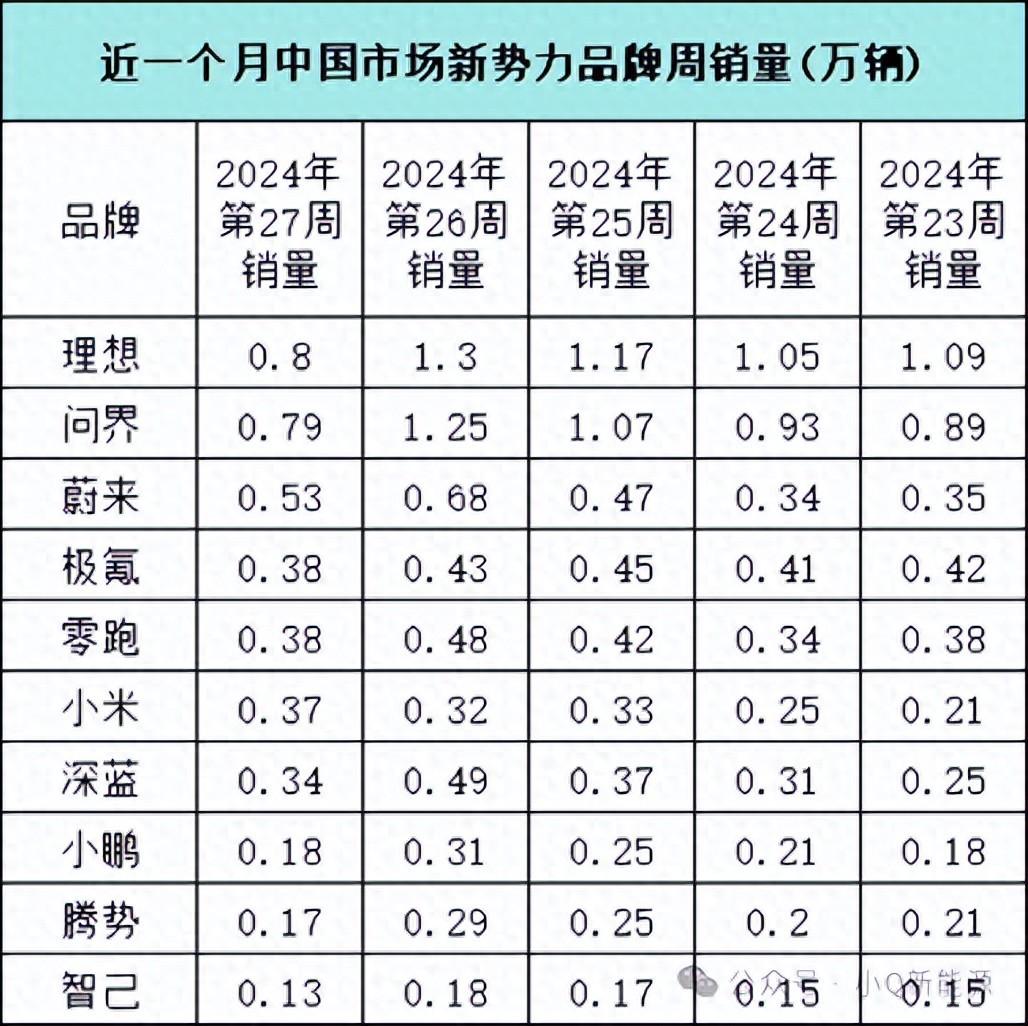 7月首周新势力销量集体走跌,小米汽车逆势上涨?