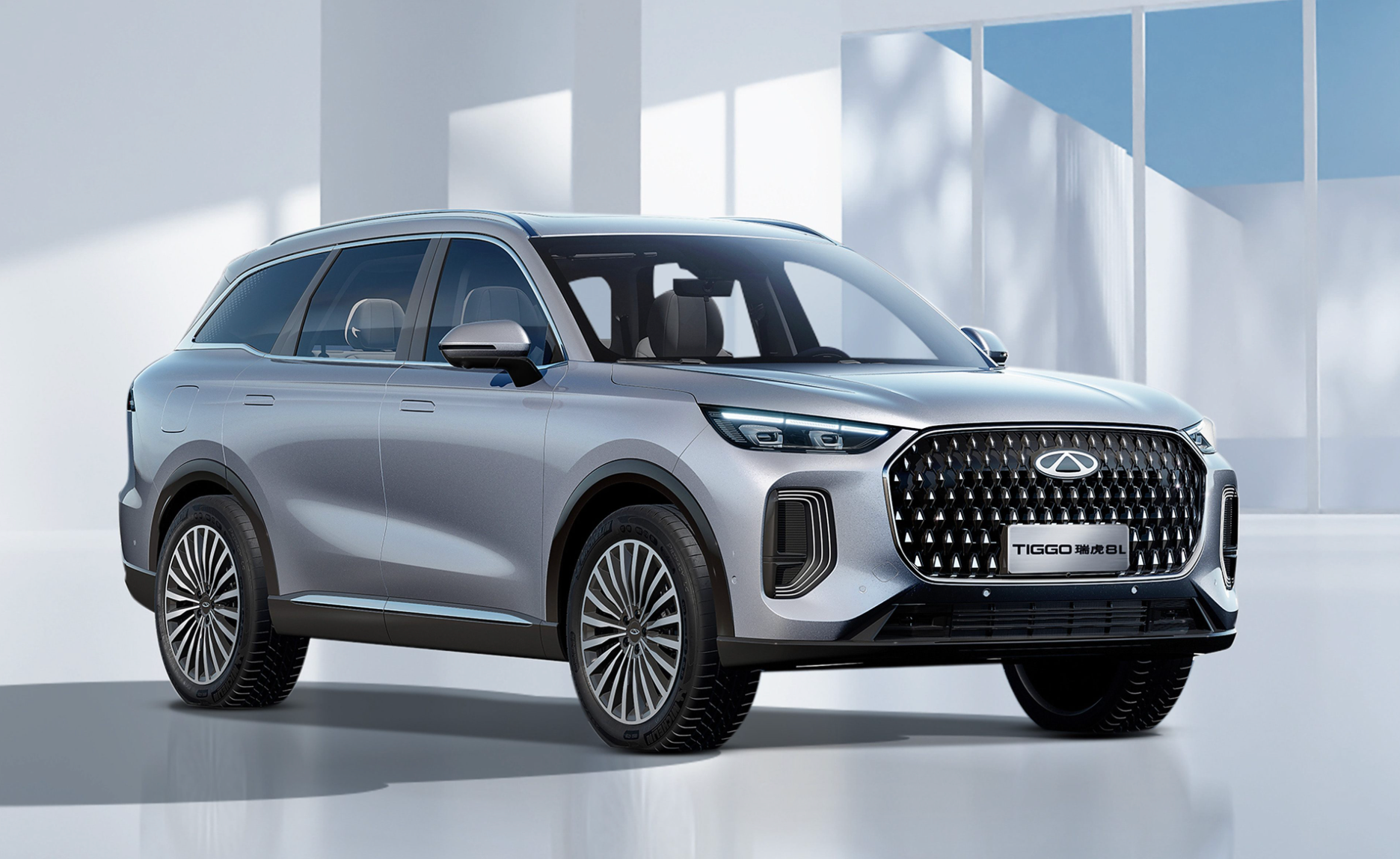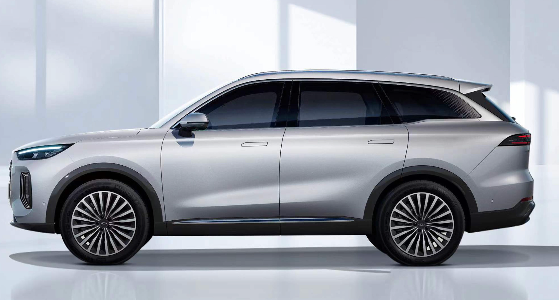 二、不过在设计风格上,你能一眼分清楚瑞虎8L,因为瑞虎8L虽说身为燃油车,但身上有很多新能源的设计特征,例如隐藏门把手、还有多条幅的大轮圈,而且整体设计明显更显贵,这点倒是很符合它家族旗舰的定位。
