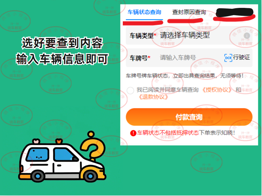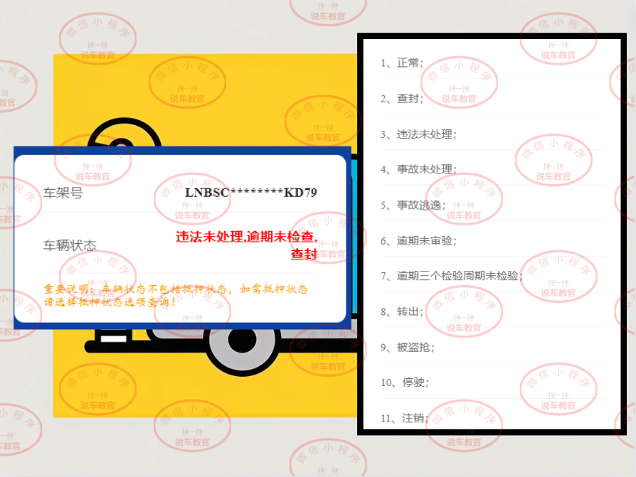 汽车查封状态、查封原因、异常状态查询方法: