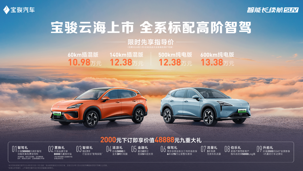 标配高阶智驾,宝骏云海上市,限时10.98万元起售