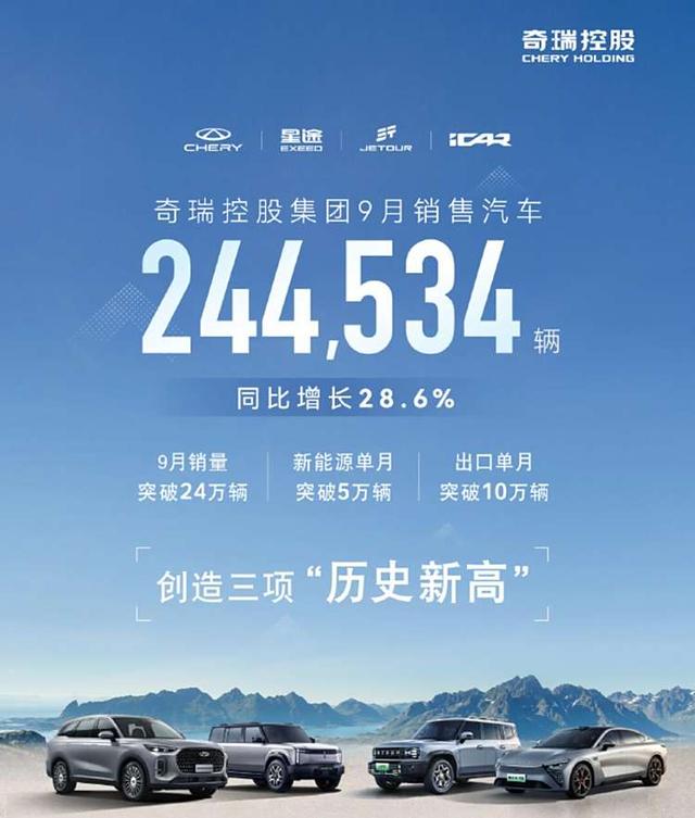10月1日,奇瑞汽车也发布9月销量“成绩单”,奇瑞集团创造三项“历史新高”,9月销量达到244534辆,同比增长28.6%。其中,奇瑞品牌销量达到151051辆,捷途汽车销量达到60226辆,销量表现都很亮眼,可以说,奇瑞汽车今年真的“不客气”,堪称车市“黑马”。