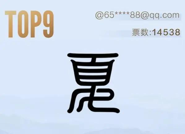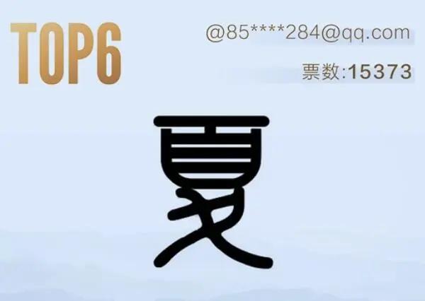 第七名,这个夏字跟第十名的那个造型上比较相似,顶上的“頁”部都嵌入了个“人”。而且这个夏字的笔画和结构也比较均衡和谐,有隶书的味道,即展现了奔放笔意,又不失文雅内敛。