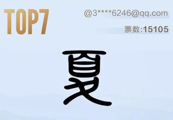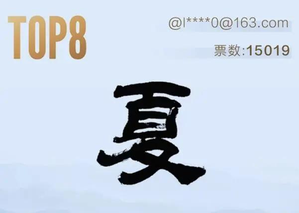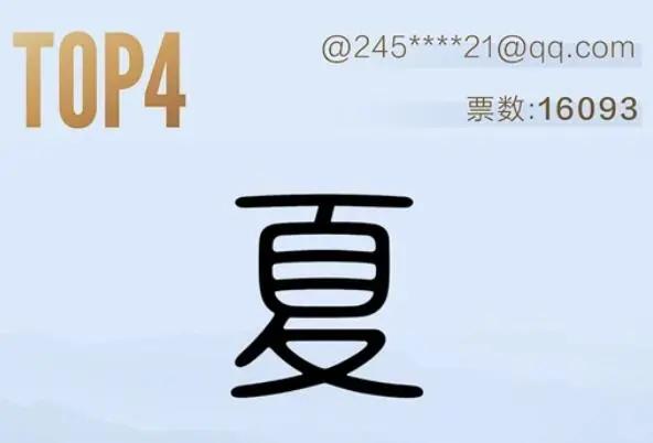 第四名,诶,这字不用说了,漫哥用下面的眼看都能认得出来。要说什么大毛病没有,就是辨识度这块差点意思。就像漫哥一样,站进人海里就找不到了,太普通了。要不漫哥也来写个夏字投稿好了?