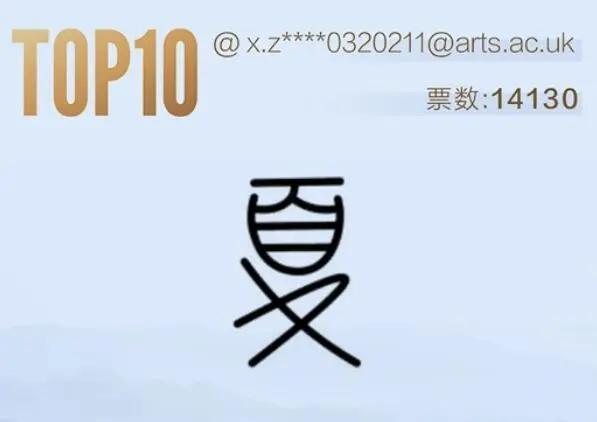 第十名,这个LOGO以夏字为原型,跟现代汉字结合,保留了篆书的頁、臼、夊三部。LOGO将字型设计的比较简洁,有一定辨识度,个人感觉视觉上不太够稳重端正,有种站立不正、支撑不稳之感。