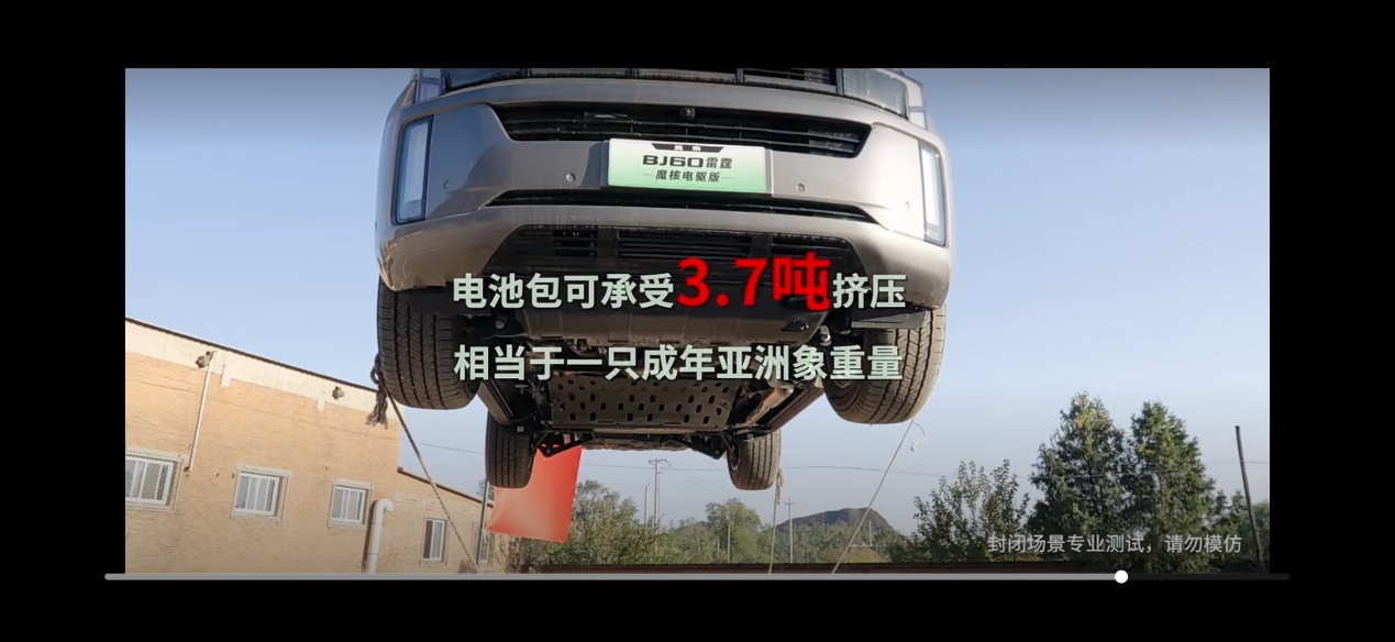但如今,越野“老厂”北京越野正式入局新能源解耦四驱之后,确实给消费者带来了一些眼前一亮的态度——将电池安全放在了核心维度。甚至为此进行了多项“毁灭”级安全实验,以检验BJ60雷霆的电池安全。如今上市以后,我们也逐渐了解到当初北京越野对这款BJ60雷霆的电池安全的要求是多么严苛。