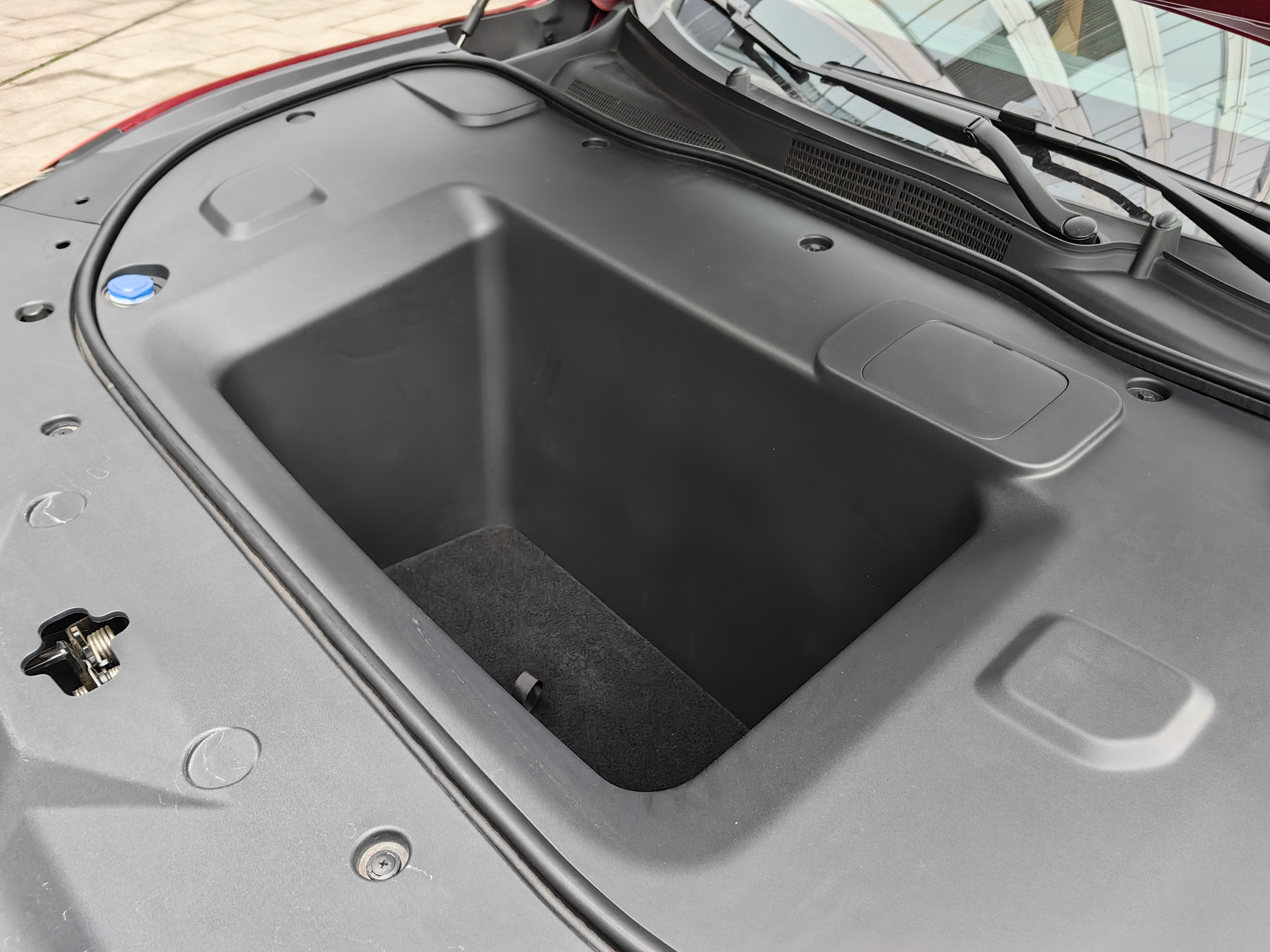 全景天幕、电动中置遮阳帘,夏天无需用户像特斯拉那样尴尬,坐车内打伞。我们试驾的纯电版EZ-6还配备有前备箱,空间大至99L,可以放置渔获、榴莲等,防止串味。