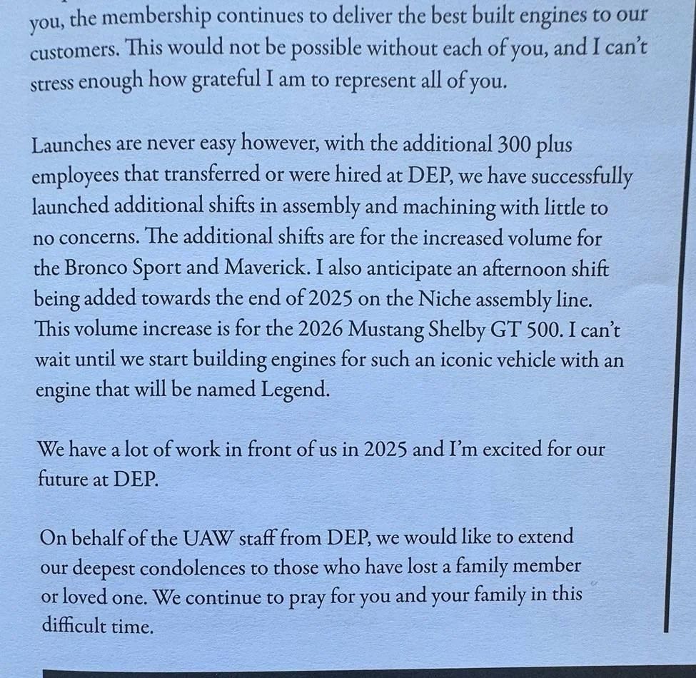 这个文件提到:「预计2025年的年底,将在Niche引擎生产线新增下午班,以应对2026年野马 谢尔比GT500的产量需求。」文件作者还补充:「我迫不及待想开始为这款代表性车款打造专属引擎,这款引擎将被命名为『Legend』。」
