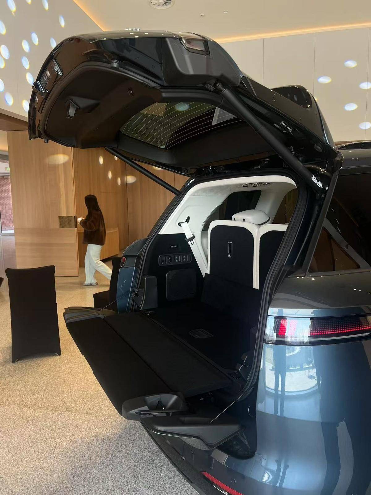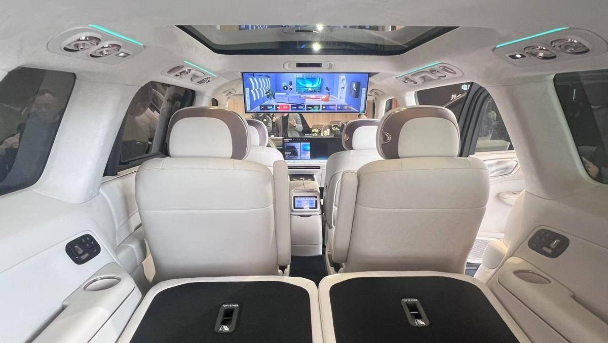 车内的布局进行了场景化分区,可随便成为空间创享研习室(移动办公室)、悦享游戏室(电竞空间)、云端会客厅(社交场景)、沉浸影音室(私人影院),覆盖工作、娱乐、社交全维度需求。而全车42处储物空间,包括车载冷暖冰箱、折叠小桌板、220V电源接口,兼顾实用性与趣味性。车尾采用了的天地尾门设计,电动尾门承重达300kg,可作临时观景台或户外座椅,扩展了车辆与自然交互的可能性。