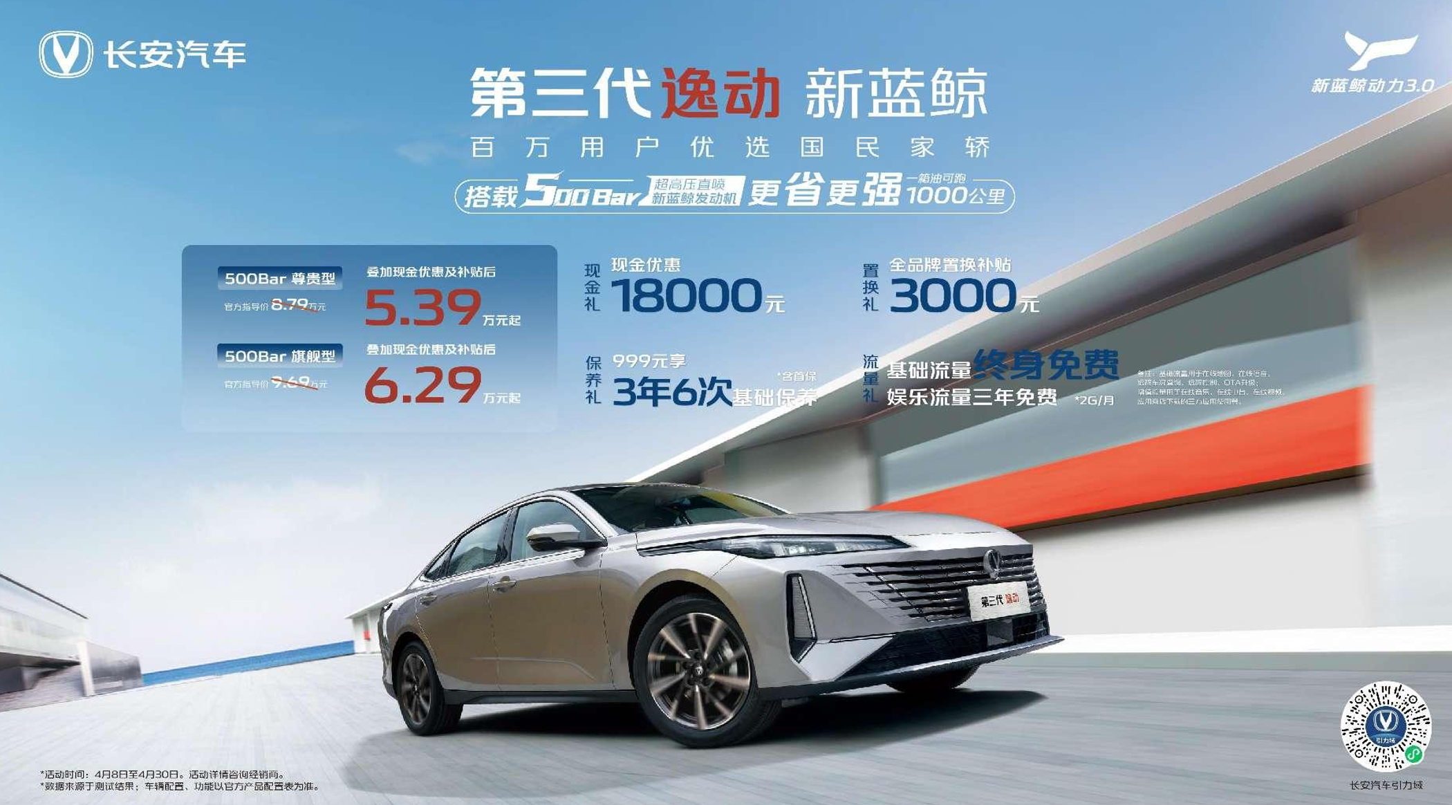 4月8日,长安逸动(参数|询价)&CS55PLUS&UNI-V三车焕新价格及权益发布。