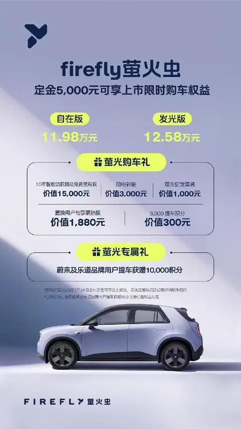 11.98万起售firefly萤火虫上市:轻奢小型纯电车,你会选择吗?
