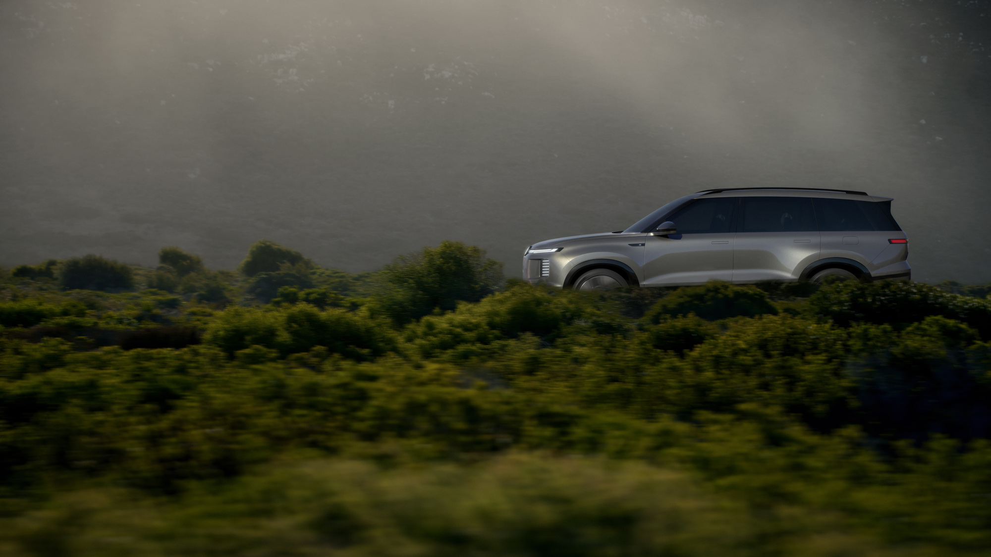 全车充满力量感的轮拱、短前后悬以及上扬的特征线,勾勒出动感、流畅且稳定的外观。前脸的横向贯穿式车灯,凸显车辆的宽度与稳重,标志性专属灯光设计既充满辨识度,又构建出和谐之感。车尾的上升特征线、符合空气动力学的鲜明边缘线等运动元素设计,进一步增强概念车的视觉宽度。