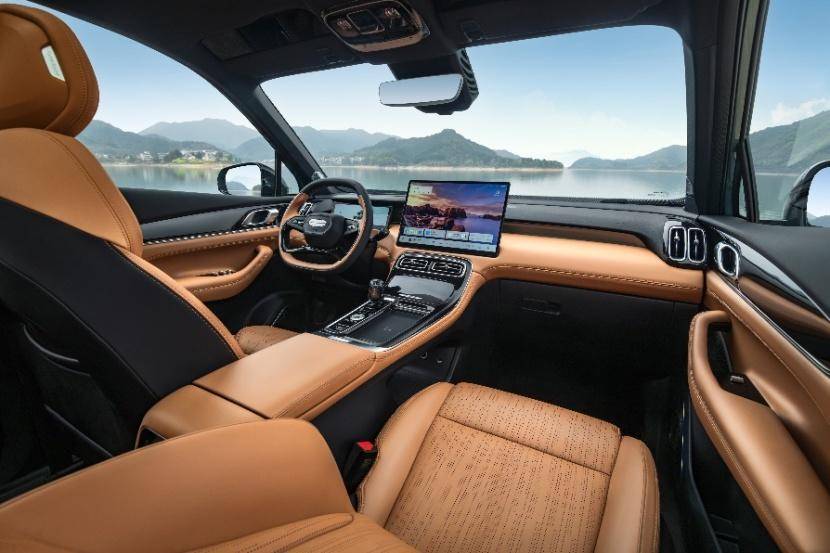 舒以“展”为贵,新车以高价值的体验感展现“大国之美”。栖岸望潮•环抱式座舱大气舒展,拥有84.27%同级最大得房率,配合琥珀金、松露灰两种内饰配色尽显高雅品味。水岸涟漪•副仪表台将灵动水波凝练为精致纹理,匹配具备50个切割面的3D镭雕水晶挡把,营造精致豪华的座舱氛围。湖岸云舒•棉花糖座椅采用十层高回弹结构与15mm超厚海绵,支持6向电动调节+4向电动腰托+腿托+按摩+加热+通风+记忆+头枕音响等9大满配舒适功能,带来“尊享主驾+女王副驾”前排双奢的顶级舒适体验。