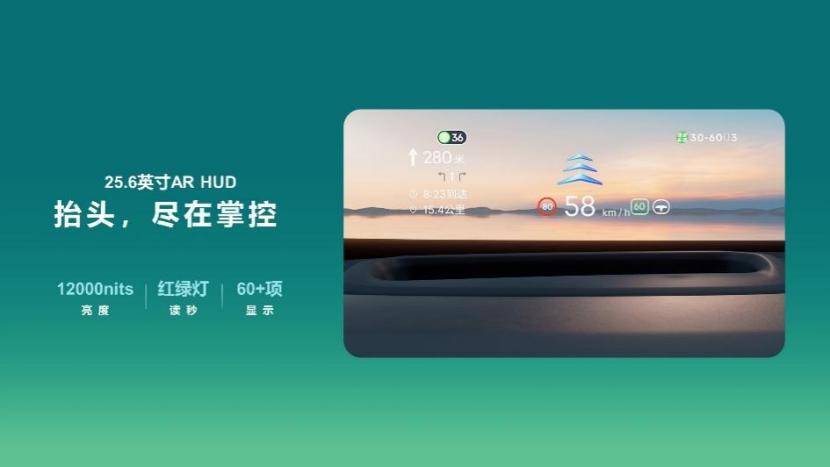 新车还搭载了同级尺寸最大的25.6英寸AR-HUD抬头显示,借助实景融合技术,带来沉浸式AR效果,集成红绿灯读秒、导航信息等多项功能,安全尽在掌控。同级独有四音区语音交互,支持一句话多指令、模糊指令识别、方言识别,全场景可见即可说,让人车交互如同与真人对话般自然温馨。