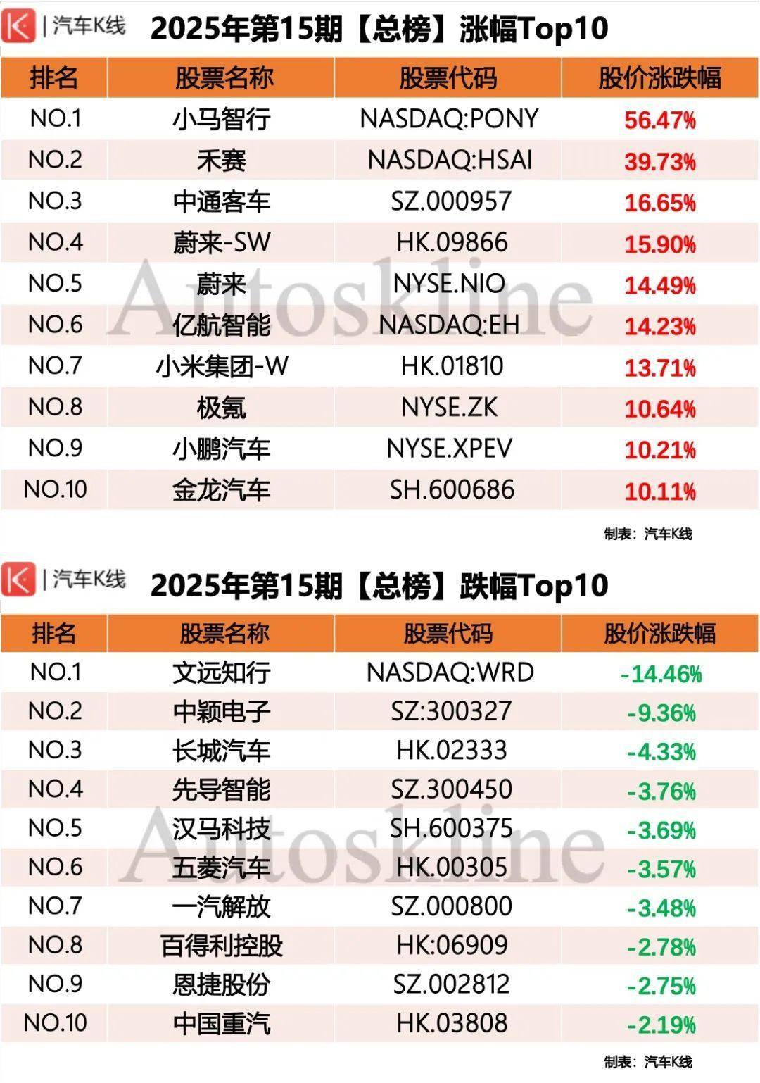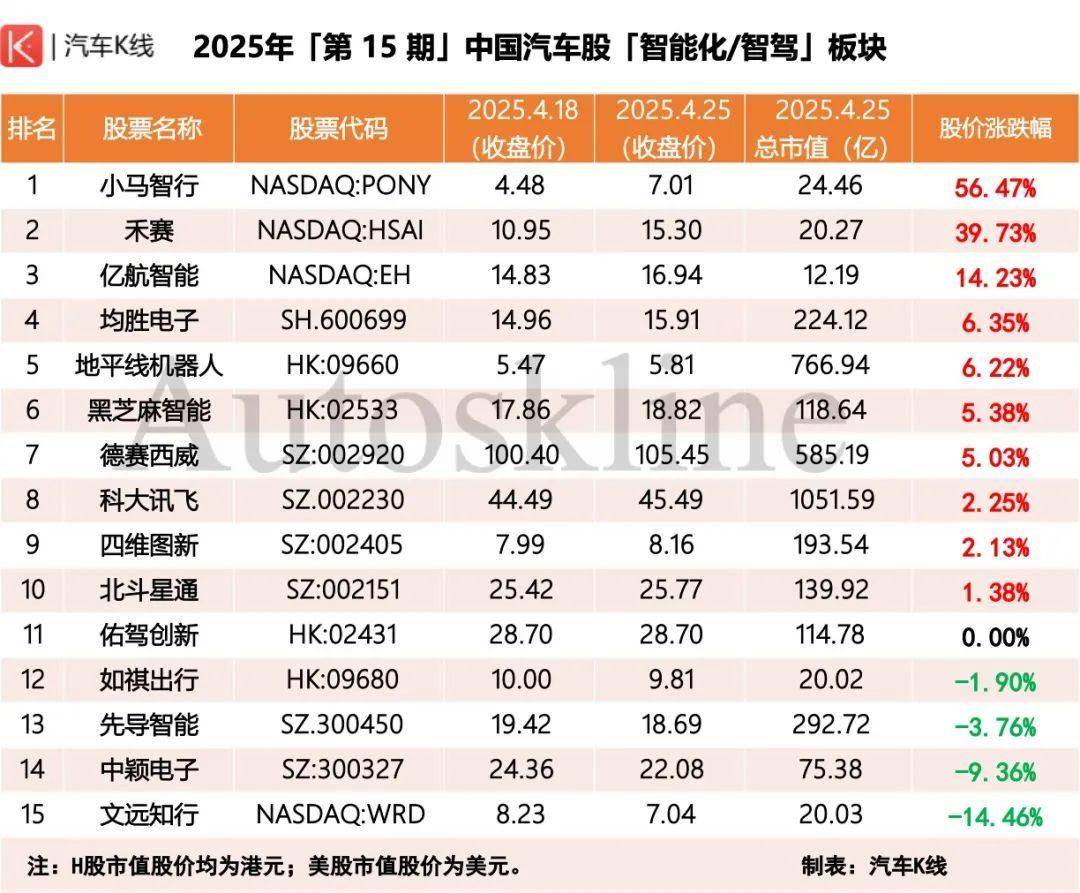 从个股来看,小马智行、禾赛为首的个股表现最为突出,涨幅分别高达546.47%和39.73%。